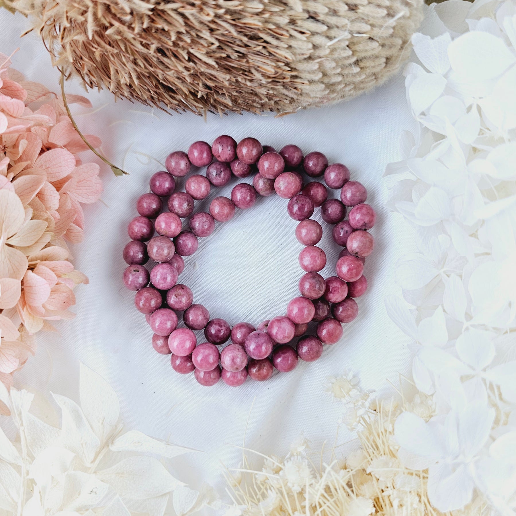 Rhodonite rounded beaded 8mm bracelet x 1 #4