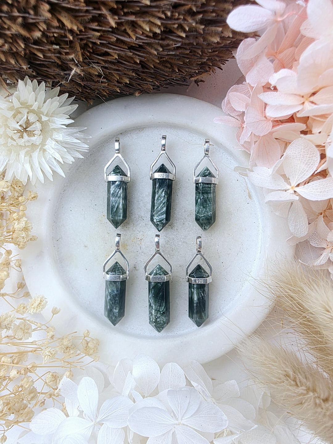 Prehnite with Epidote & Black Tourmaline Tumbled Silver Pendant