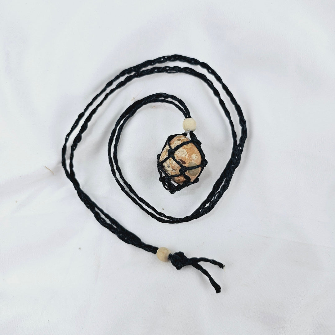 Here you can buy macrame mounted crystal jewellery online. Each crystal is delicately bound in place by quality macrame necklace or bands. Macrame crystal jewellery is a very natural way to wear your crystals, that can look amazing too.