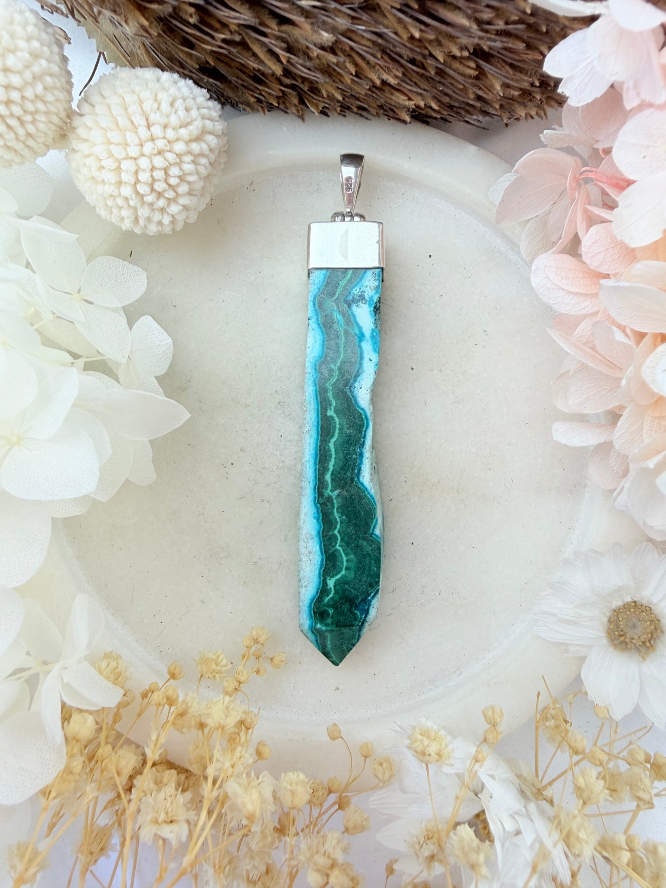 Malachite Chrysocolla Silver Pendant