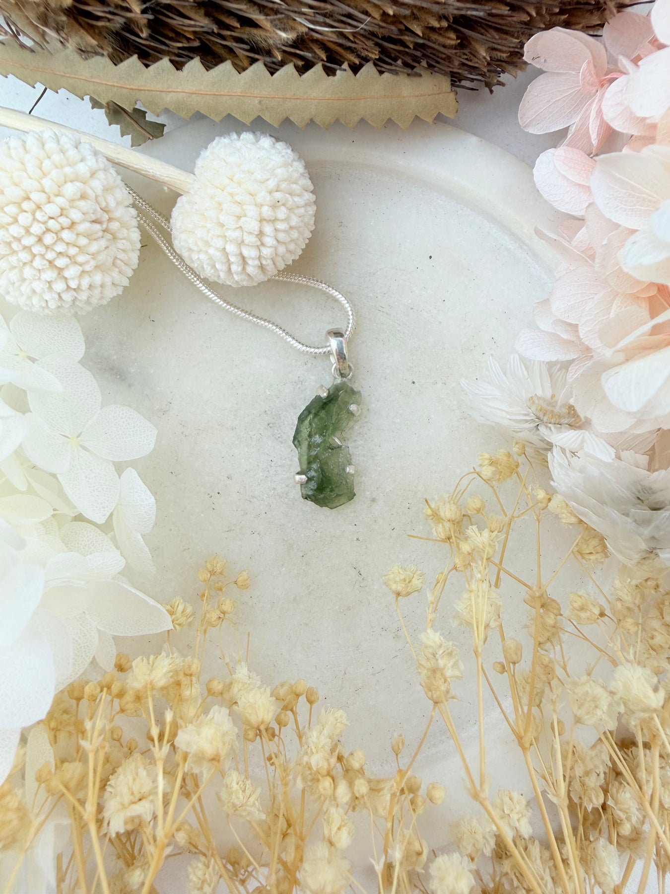 Genuine Moldavite Specimen handcrafted with love & set in sterling 925 silver