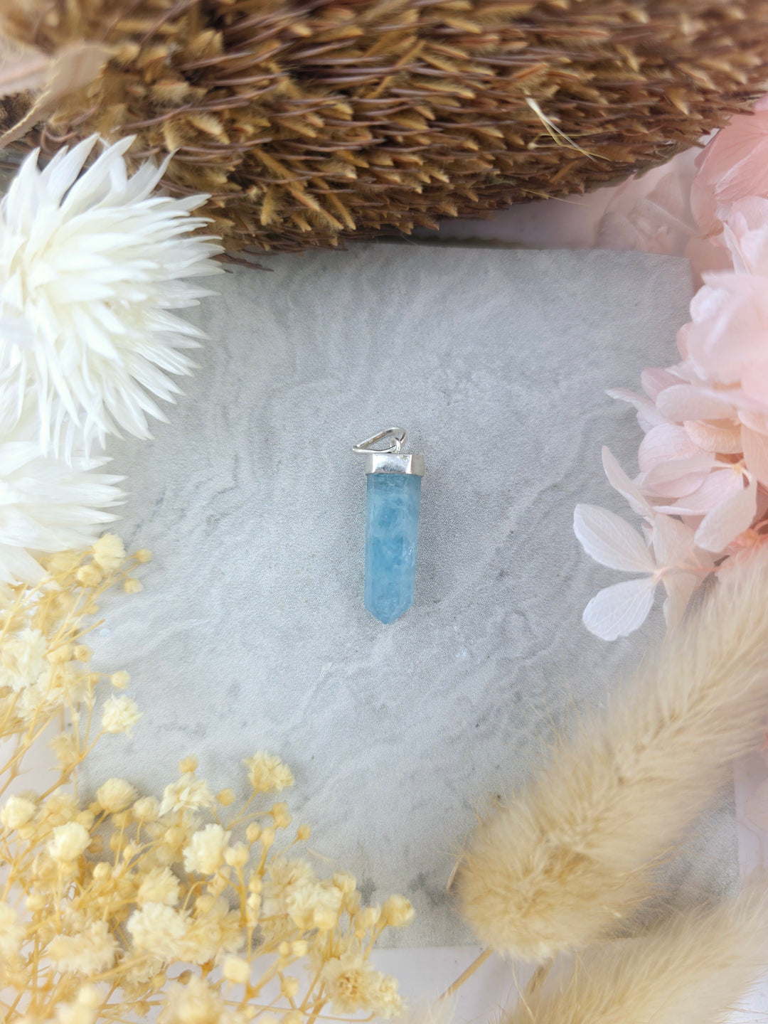 Aquamarine, Prehnite & Larimar Silver Pendant