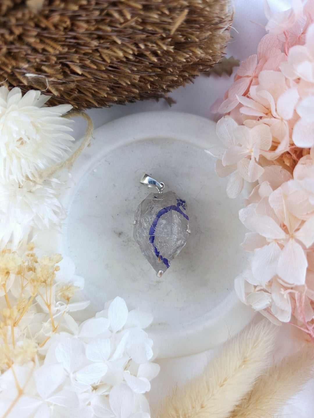 Clear Quartz with Enhydro Bubble Double Terminator Silver Pendant