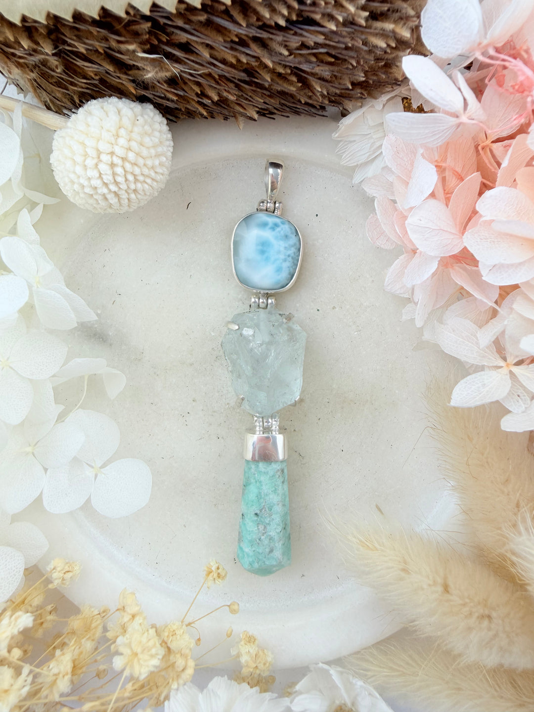 Larimar, Aquamarine & Amazonite Silver Pendant