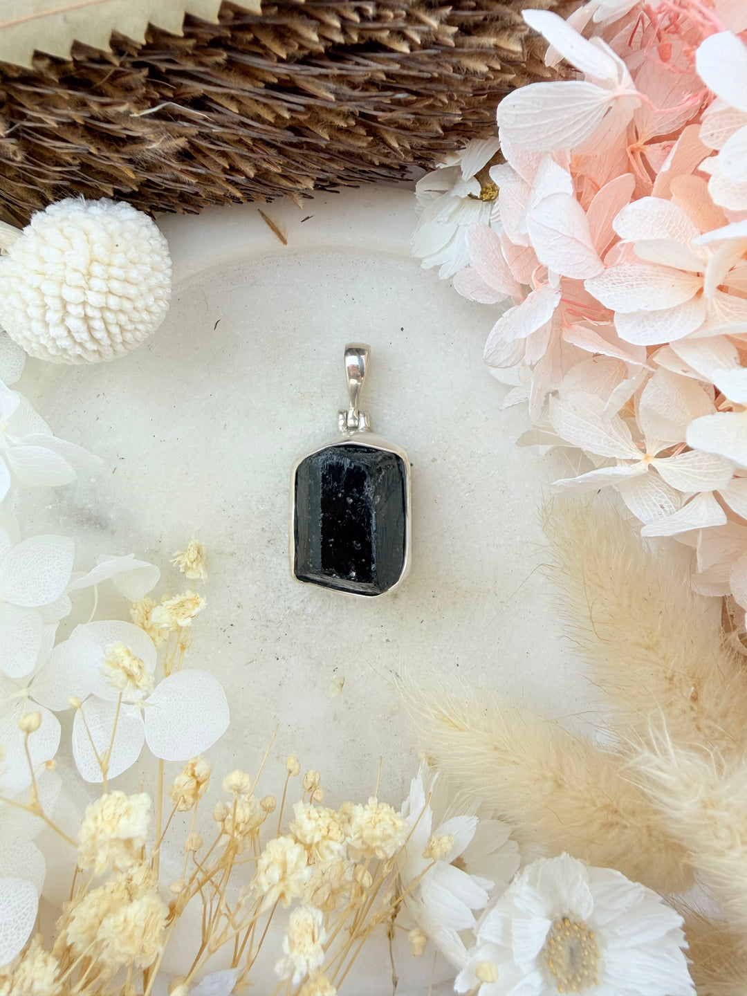 Black Tourmaline Natural Silver Pendant