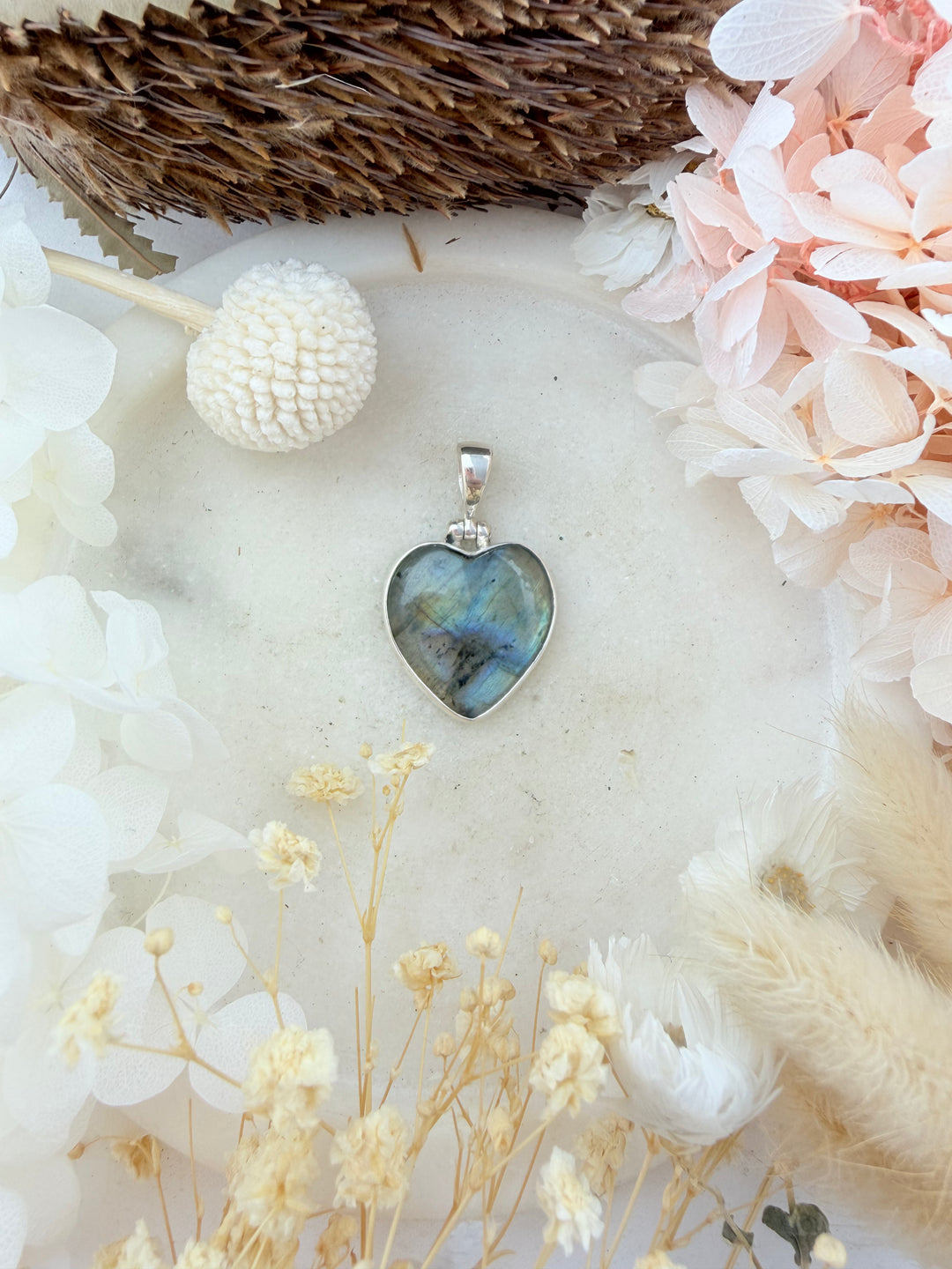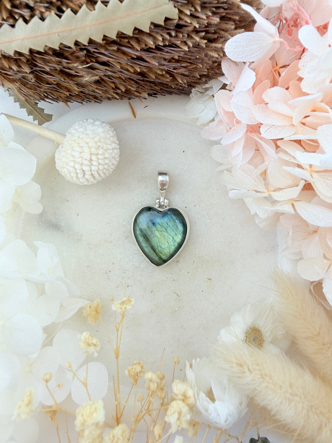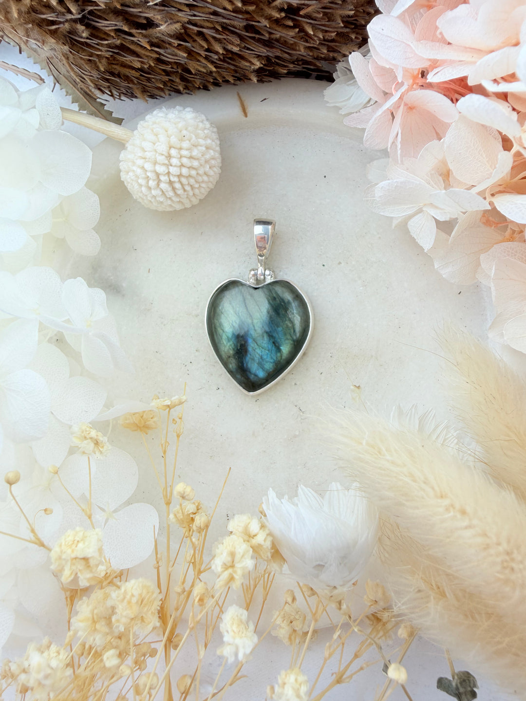 Labradorite Heart Silver Pendant